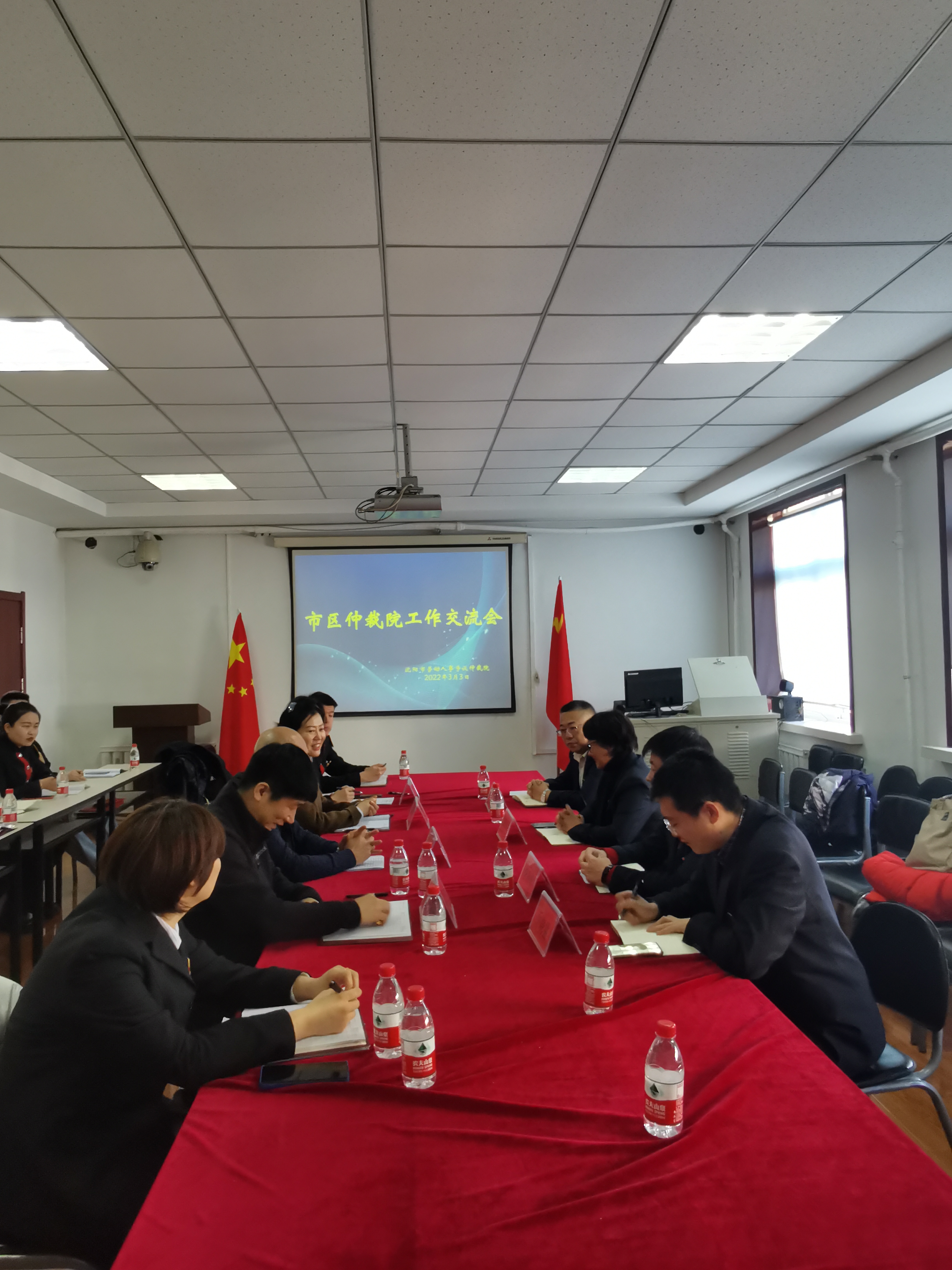 张祥鑫主任、齐芳副主任首先感谢沈阳仲裁办来沈河区仲裁院进行指导交流,助力沈河区仲裁院的建设。乔旭部长分析当前受国家“双减”政策、房地产行业遇冷、新冠肺炎疫情等影响,市、区两级仲裁机构在案件管辖、裁审意见等方面应深入沟通,以求创造良好的营商环境。