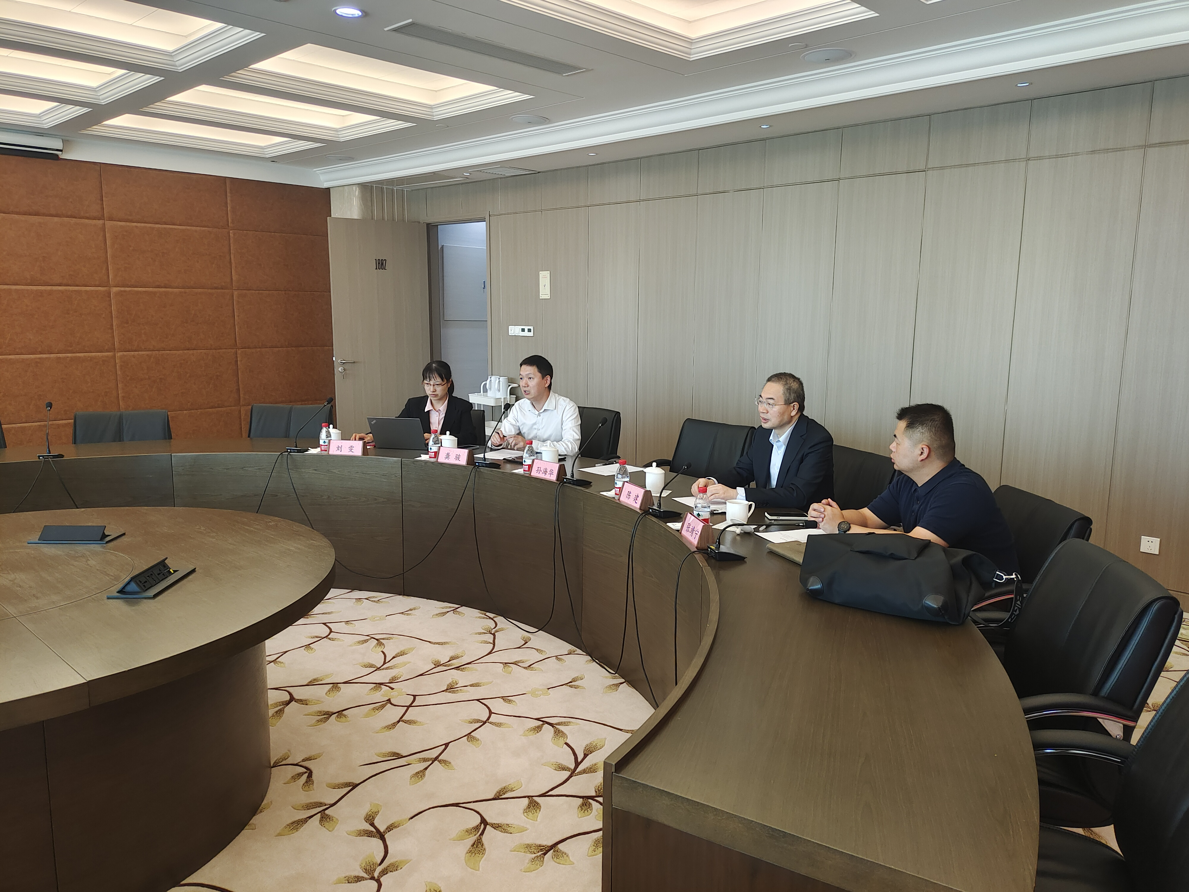 5月8日上午,调研组前往上海金融仲裁院参观访问。上海金融仲裁院是国内成立的首个金融专业仲裁院,成立以来,妥善处理了大量金融领域的矛盾纠纷,打响了国内领先、国际知名的金融仲裁服务品牌。金融仲裁院秘书长龚骏陪同我办一行参观了仲裁院办公办案环境,详细介绍了信息化庭审建设情况。在随后的座谈中,双方围绕金融仲裁发展趋势、案件核阅、仲裁院队伍建设等方面开展了深入交流。