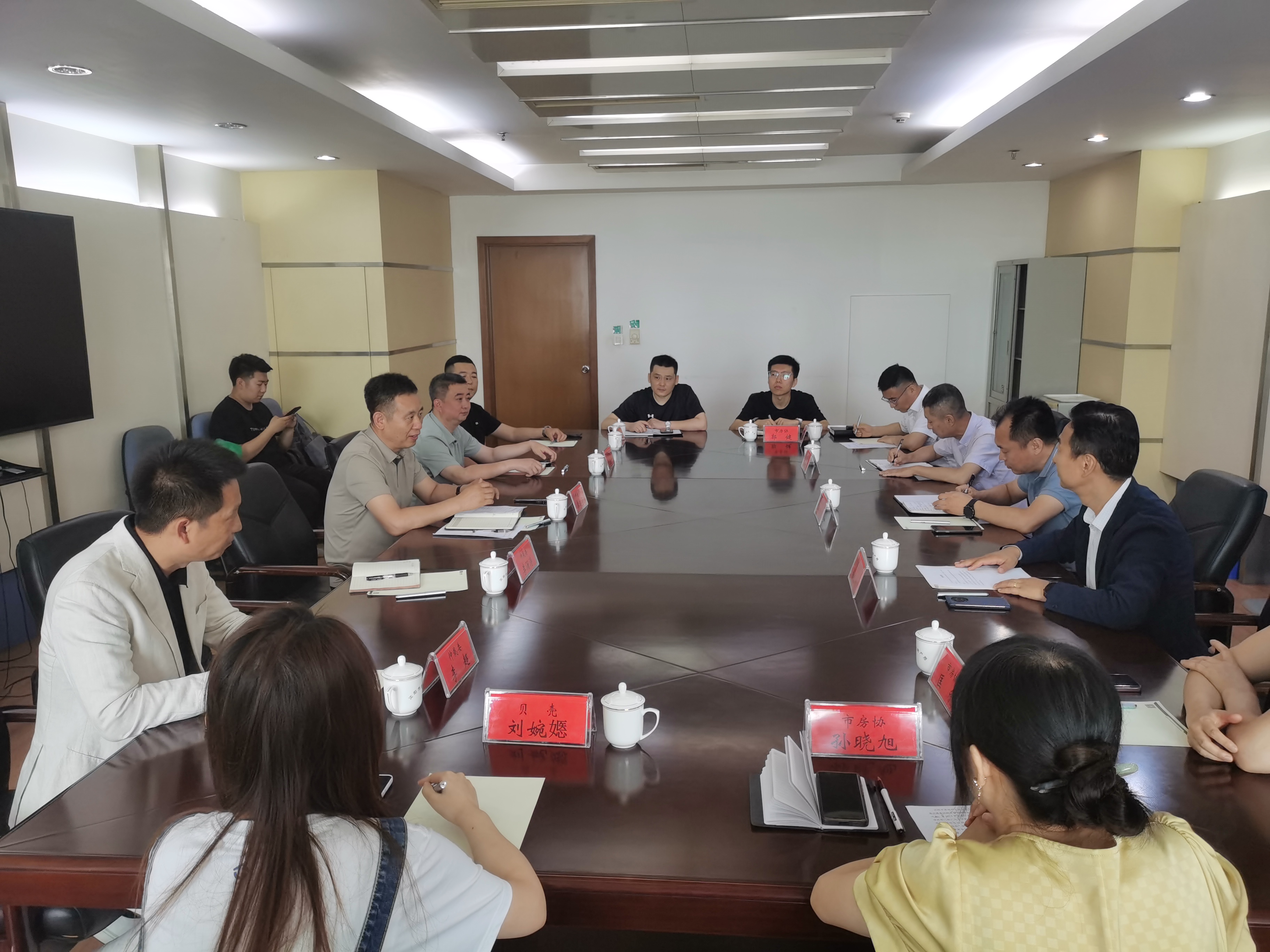 7月11日,沈阳仲裁委员会办公室副主任李俊泉、综合部部长吕继开、仲裁员李超一行走访了沈阳市房地产业协会并开展调研座谈活动。沈阳市房地产业协会高度重视此次座谈会,驻会会长、沈阳联祥地产营销策划有限公司董事总经理杜宏鹏、党支部书记匡欣、秘书长孙晓旭参加座谈,同时还邀请了市房产局市场处副处长周国伟、市自然资源局不动产登记中心法务部长高成华等行业主管部门代表,以及辽宁贝壳房地产经纪有限公司和辽宁芒果网络股份有限公司等会员单位代表到会参加座谈。